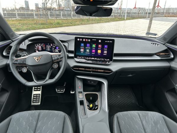 A beltér érthetően a VW-csoport megoldásaira épül, mégis erősen egyedi, Cupra-hangulatot áraszt. A 12,9 colos infotainment rendszer alatti érintős csúszkák ugyan tanulást igényelnek, de a fizikai gombokkal felszerelt kormány, a bronzszínű részletek és az ergonomikus, jól tartó Dinamica sportülések remek komfortot teremtenek. A hátsó ülésen két felnőtt kényelmesen elfér, a sínen tologatható pad és a 630 literig bővíthető csomagtartó pedig igazán családbarát megoldás.