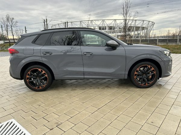 Habár a 4,5 méter hosszú Terramar valahol a Formentor és a Tavascan között helyezkedik el, karakterében mégis egyedi. Az éles vonalvezetésű orr-rész, a háromszög grafikájú (feláras) Matrix LED fényszórók és a brutális méretű hűtőnyílások egyértelműen sportautós hangulatot árasztanak. A Graphene Grey alapfényezés helyett azonban jobban mutat az Enceladus matt szürke metál – főleg a 20 colos bronz-fekete felnikkel párosítva.