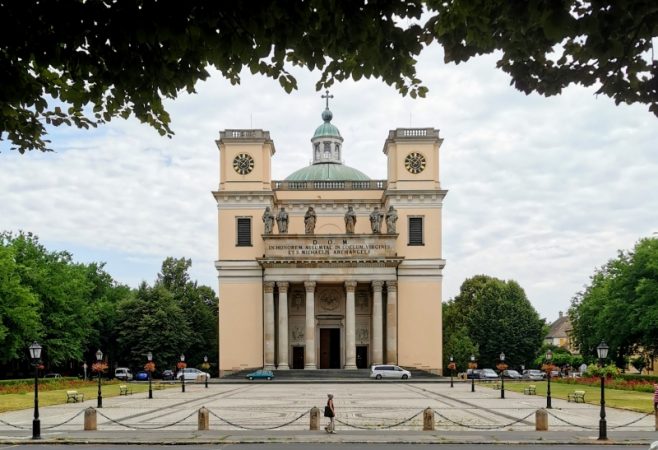 A székesegyház kupolája Magyarország egyik legjelentősebb ilyen jellegű alkotása. A közel 500 négyzetméteres freskót a 18. századi osztrák festő, Franz Anton Maulbertsch készítette. A „Mennyország dicsősége” című kompozíció mintegy 150 alakot ábrázol: a felhők közül átszűrődő fényben jelenik meg az Atya, a Fiú és Szűz Mária, angyalok, apostolok és szentek társaságában – egy olyan képi világ, amely a barokk kor hitét és látásmódját is közvetíti.