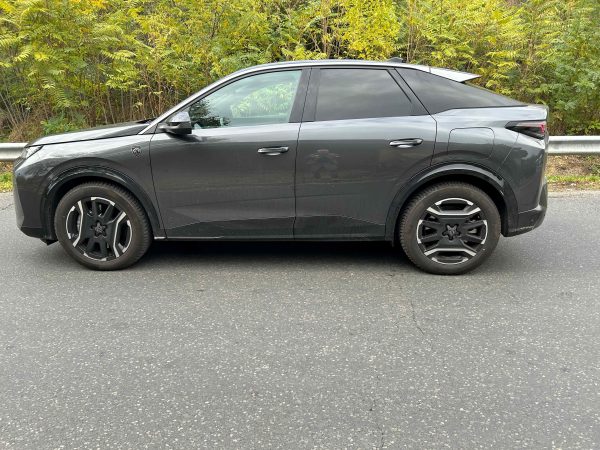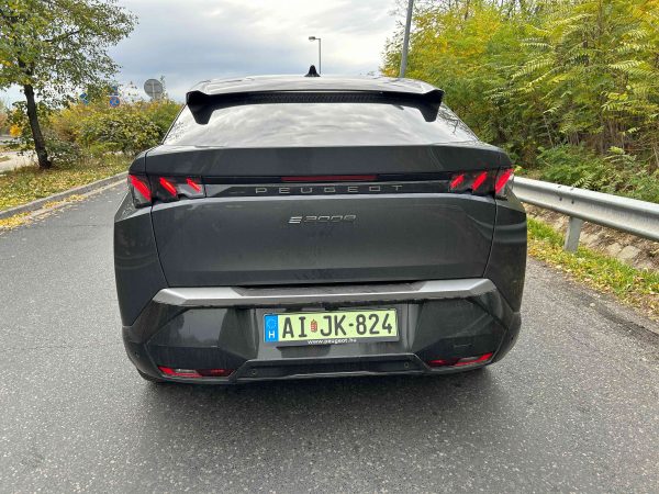 Az E-3008 formája különösen jól sikerült. Oldalról nézve erősen kupés a tetőív, hátulról pedig kifejezetten látványos a fényrajz és a finoman sportos far. Az összkép egységes, átgondolt, és szerencsére nincs benne semmi abból az erőltetett futurizmusból, amely sok villanyautót kissé idegenszerűvé tesz. Az E-3008 attól szerethető, hogy elektromos létére is autónak néz ki, méghozzá egy kifejezetten vonzó autónak.