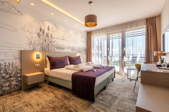 A Hotel Golden Lake Resortban a szobák kialakítása nemcsak a kényelmes pihenést, hanem a zavartalan munkát is szolgálja azzal, hogy a „home office” jellegű munkavégzéshez is minden adott. A tágas íróasztal, a kényelmes szék és a stabil wifi garantálja, hogy egy prezentáció átnézése, egy kampány finomítása vagy néhány fontos e-mail megválaszolása is természetes része legyen az itt töltött időnek. Mindezt úgy, mintha egy csendes, privát dolgozószobába vonult volna vissza az ember.
