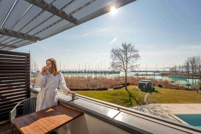 The pool, ideal for a day-starting swim, and the jacuzzi create a natural balance of evening exercise and rest. The Balinese massage based on traditional Indonesian techniques — accompanied by exotic scents and soothing music — offers deep relaxation, stress relief, and the liberation of tired muscles. Through the hotel’s uniquely atmospheric sauna world overlooking Lake Balaton and its attractive yet intimate evening sauna sessions, regeneration occurs not only on a physical but also on a mental level.