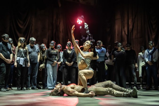 Amikor aztán lassan megérkeznek a karakterek, a világ hirtelen mozgásba lendül, és ezzel együtt elkezdődik az igazi nézői kihívás is. Ennek oka, hogy a produkció ugyan Dido és Aeneas tragikus szerelméből merít inspirációt, a történetet mégsem lineárisan meséli el, hanem darabokra bontva, tekintetekben, mozdulatokban és elkapott pillanatokban engedi létezni azt.