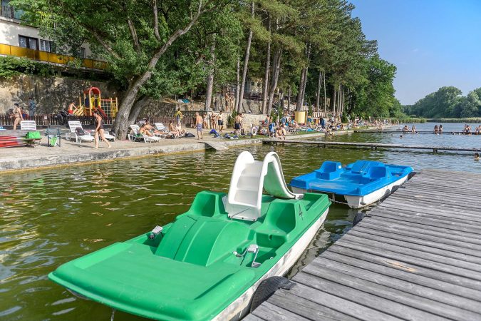 A vízibiciklikkel akár a tó közepére is kijuthatunk, és körbetekerhetjük a teljes vízfelületet – igazi nyári kikapcsolódás, amely egyszerre aktív és nyugodt élményt kínál.