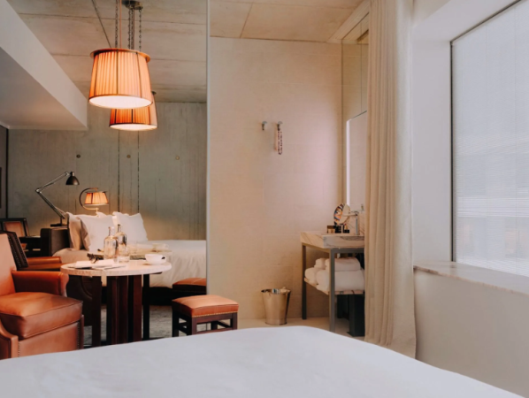 A másodiktól a nyolcadik emeletig terjedő 104 szobát és lakosztályt Starck visszafogott, de fényűző stílusban tervezte: Nagyméretű márványlapok, természetes bőrfotelek és Manfred Heler világára való finom utalások jellemzik a szobákat. „Szinte spártai szellem” – magyarázza Starck – „megszabadítva minden felszínességtől, amelyben minden anyag érvényesíti a saját színét: a pamut fehérje, a beton szürkesége a mennyezeten és a falakon”.
