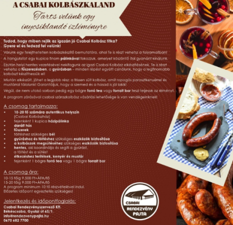 A Csabai Kolbászkaland a gasztronómia szerelmeseinek kínál különleges élményeket. A rendezvény keretében kolbászkóstolók, főzőversenyek és kulturális programok várják az érdeklődőket.